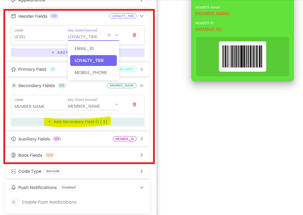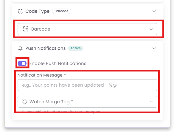 Code Type: Select the format for the scannable code on the pass. It can be Barcode or QR Code