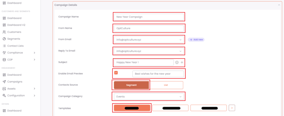 - Templates: Choose a pre-designed template for your email.
