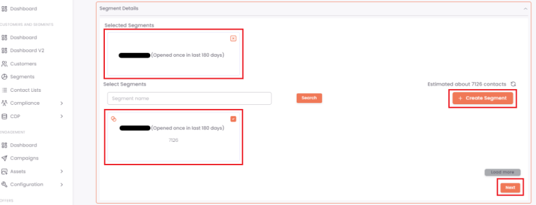 Best Practice: It is recommended to choose segments over lists. Segments allow you to filter your audience, ensuring your campaign is relevant and improving engagement. For example, you can send a "Running Shoes" campaign only to customers who have previously purchased running gear.
