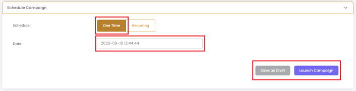 Recurring: The campaign can be sent repeatedly (e.g., daily, weekly, monthly).