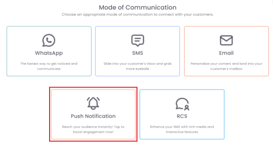 From the "Mode of Communication" options, select Push Notification.