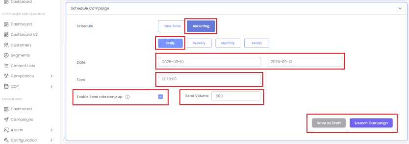 Once you've chosen your schedule, you can either click Save as Draft or Launch Campaign.