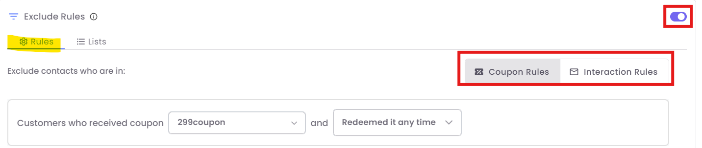 Exclusion by Rules (Coupon/Interaction): Click the Rules tab.