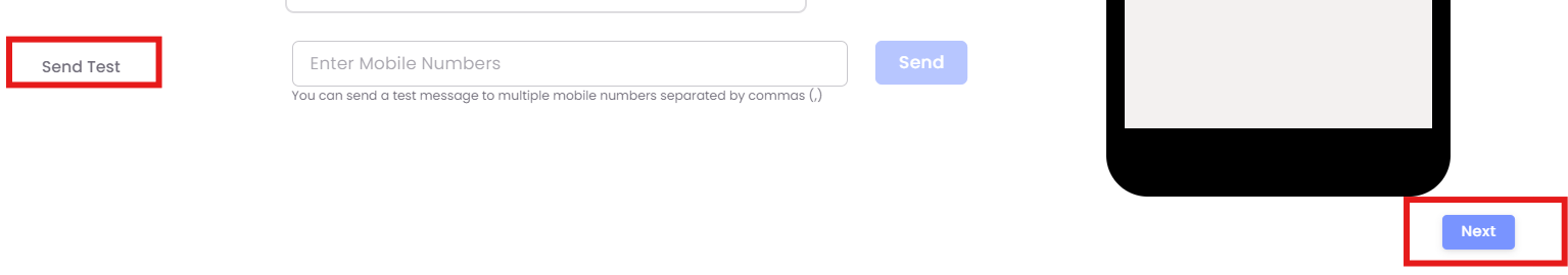 Enter one or more mobile numbers (separated by commas) to receive a test message. This lets you preview the message content and delivery.