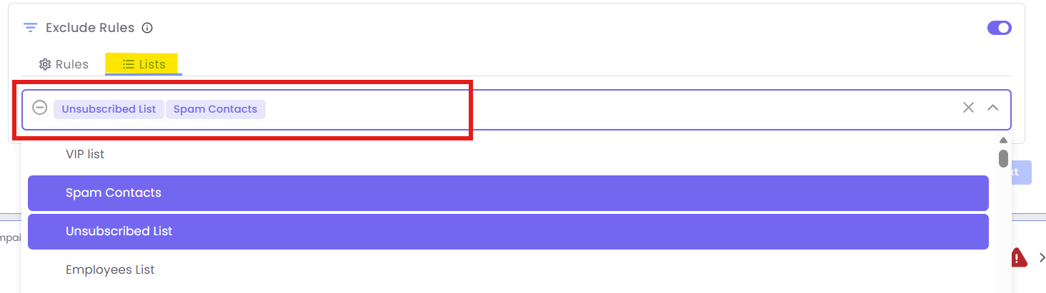 Ensure the Exclude Rules toggle is ON (highlighted in the images).