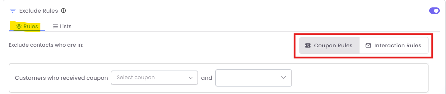Exclusion by Rules (Coupon/Interaction): Click the Rules tab.