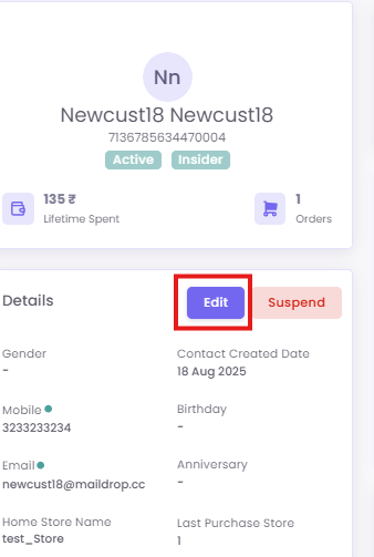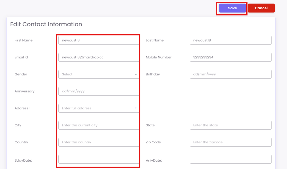 The Edit Contact Information screen will appear, allowing you to modify the customer information. After making your changes, click Save.