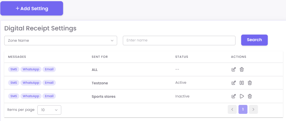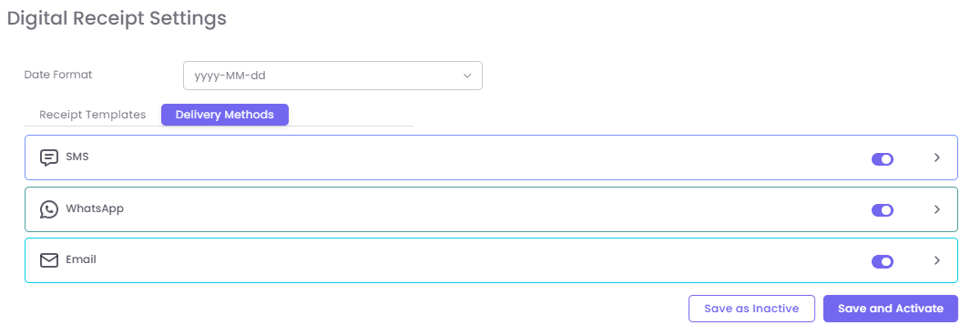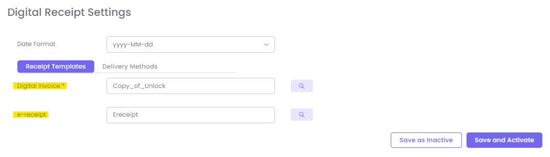 After creating a template, you must configure the system to use that template and define how receipts are sent.