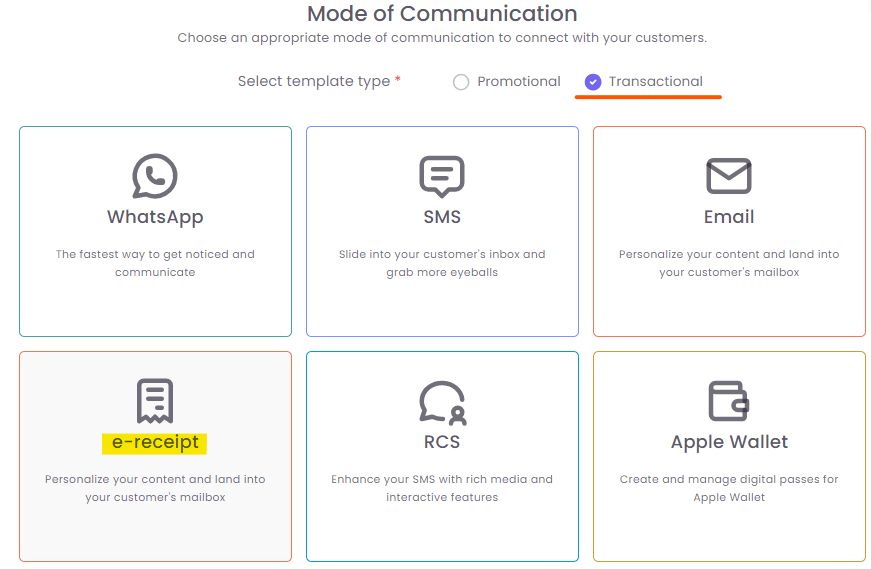 On the "Mode of Communication" screen, select the Transactional radio button.