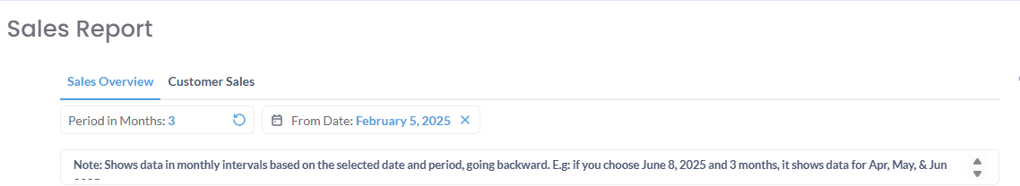 • Note: As the helper text indicates, if you choose June 8, 2025, and a 3-month period, the report will show data for April, May, and June.