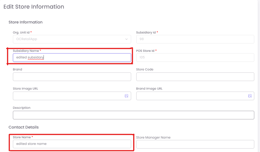 This action opens the same Enter Store Information form, but pre-filled with the store’s current data.