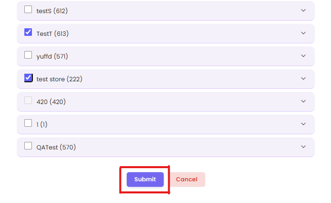 Remove stores by unchecking the box next to their name.
