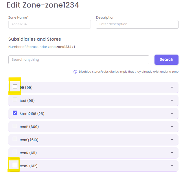 You can easily modify a zone's name, description, or the stores assigned to it.